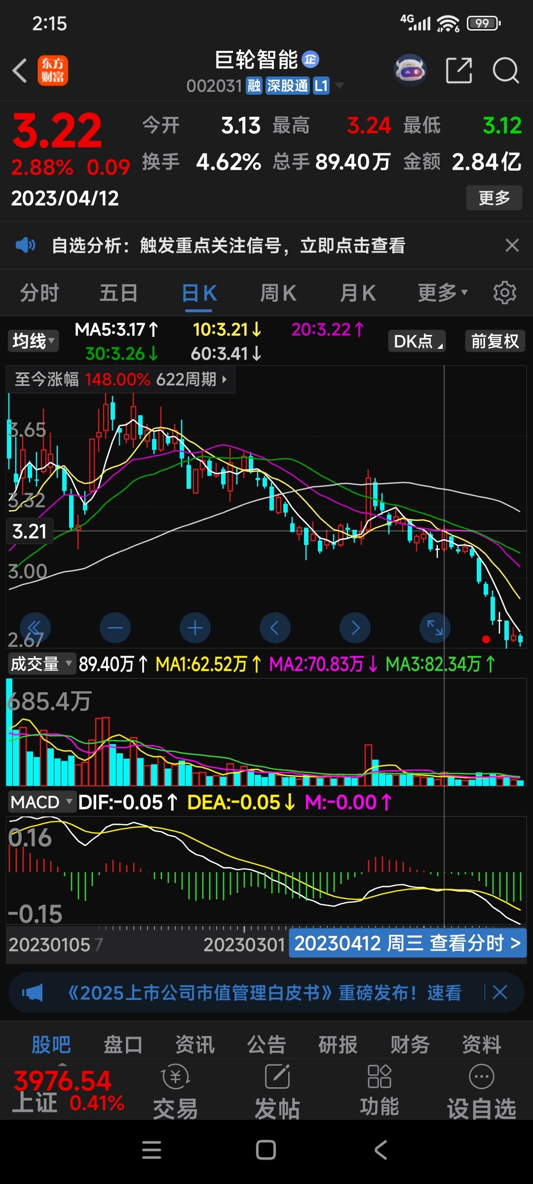 $巨轮智能(SZ002031)$ 十字光标处,像不像今日