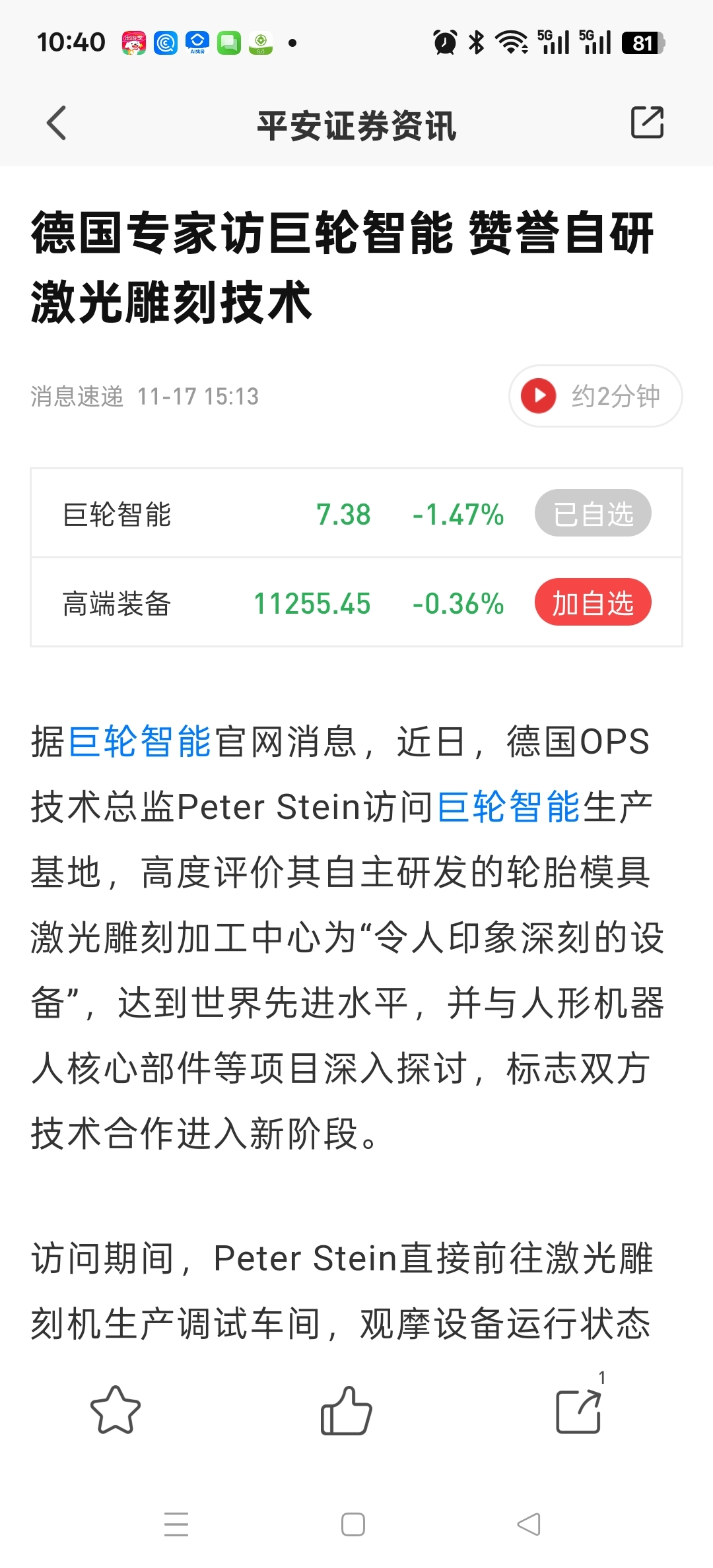 $巨轮智能(SZ002031)$