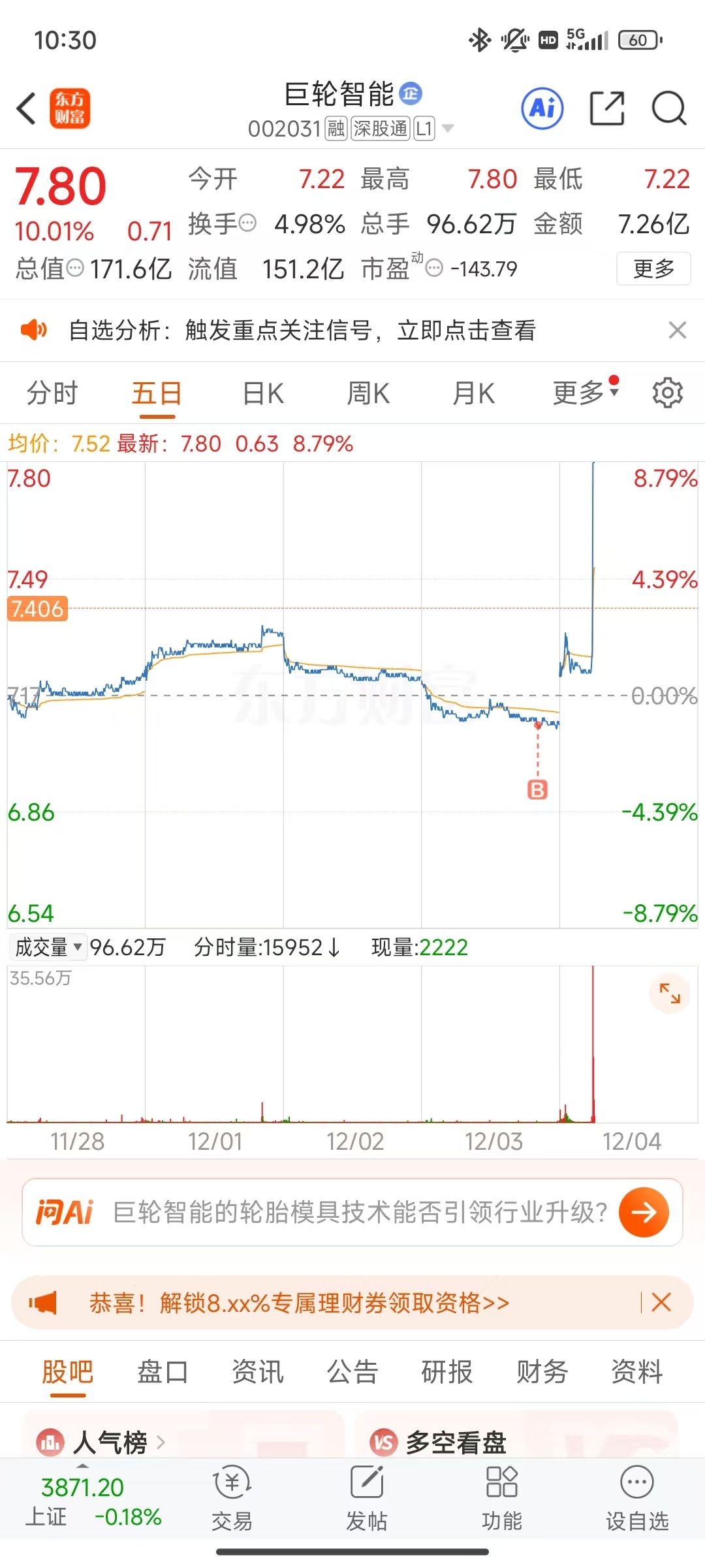 $巨轮智能(SZ002031)$ 昨天补了个仓,这次终于弄对了