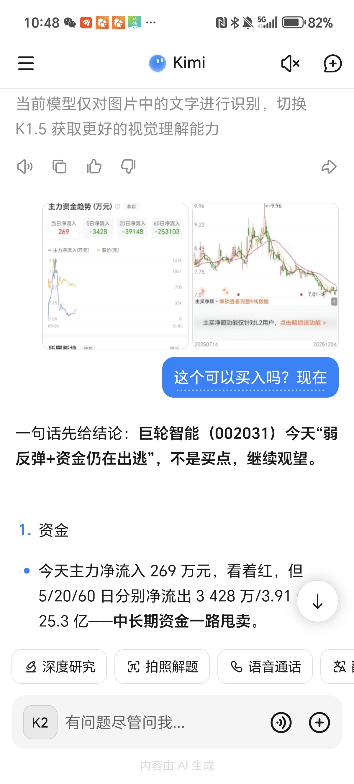 $巨轮智能(SZ002031)$ AI不可信,我早上问AI能不能买,AI说不能