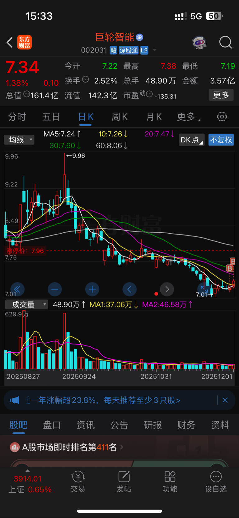 $巨轮智能(SZ002031)$ 前几天发帖说埋伏,那些喷子呢??