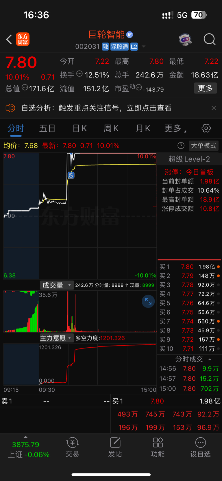 $巨轮智能(SZ002031)$ 把我洗出来了,看封单减少,7.2建仓。观察下继续干!