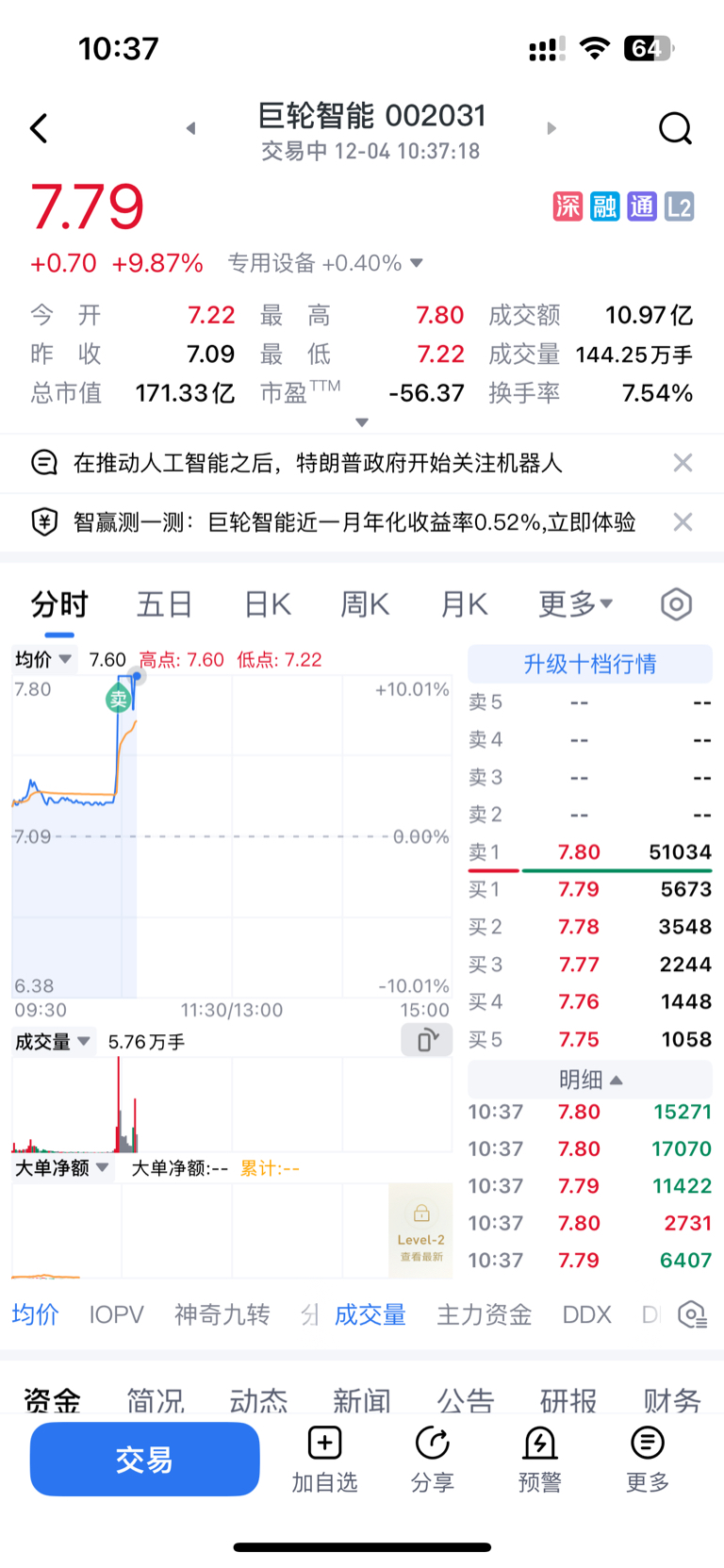 $巨轮智能(SZ002031)$ 明天低开,我早就猜到了。早盘挂涨停板直接出的