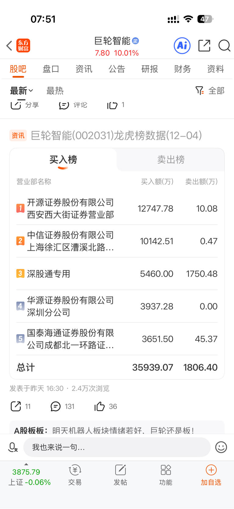 发个龙虎榜给大家泼泼冷水,远离量化,人人有责