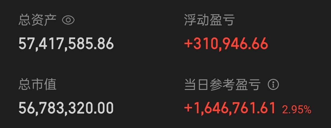 少帅日记;初始资产:7000万;今日战况:2.95%;亏的割完了,重新开始。今天