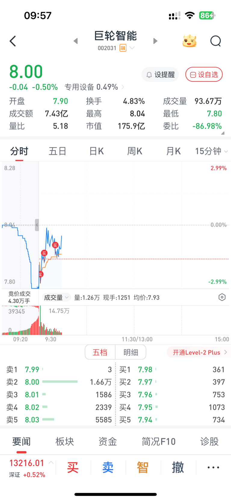 $巨轮智能(SZ002031)$ 趋势走势上涨,坐稳扶好