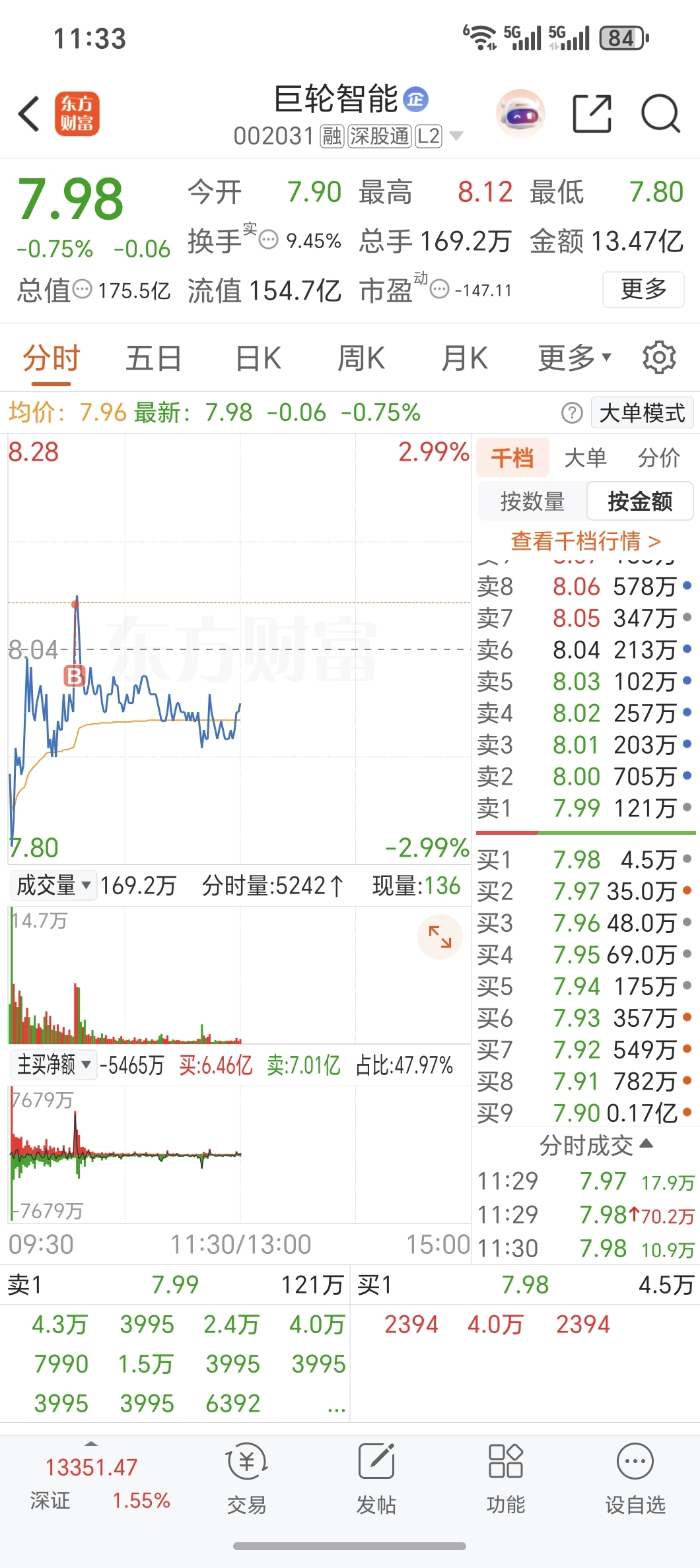 $巨轮智能(SZ002031)$ 本想拉个涨停的,没想到抛压这么重