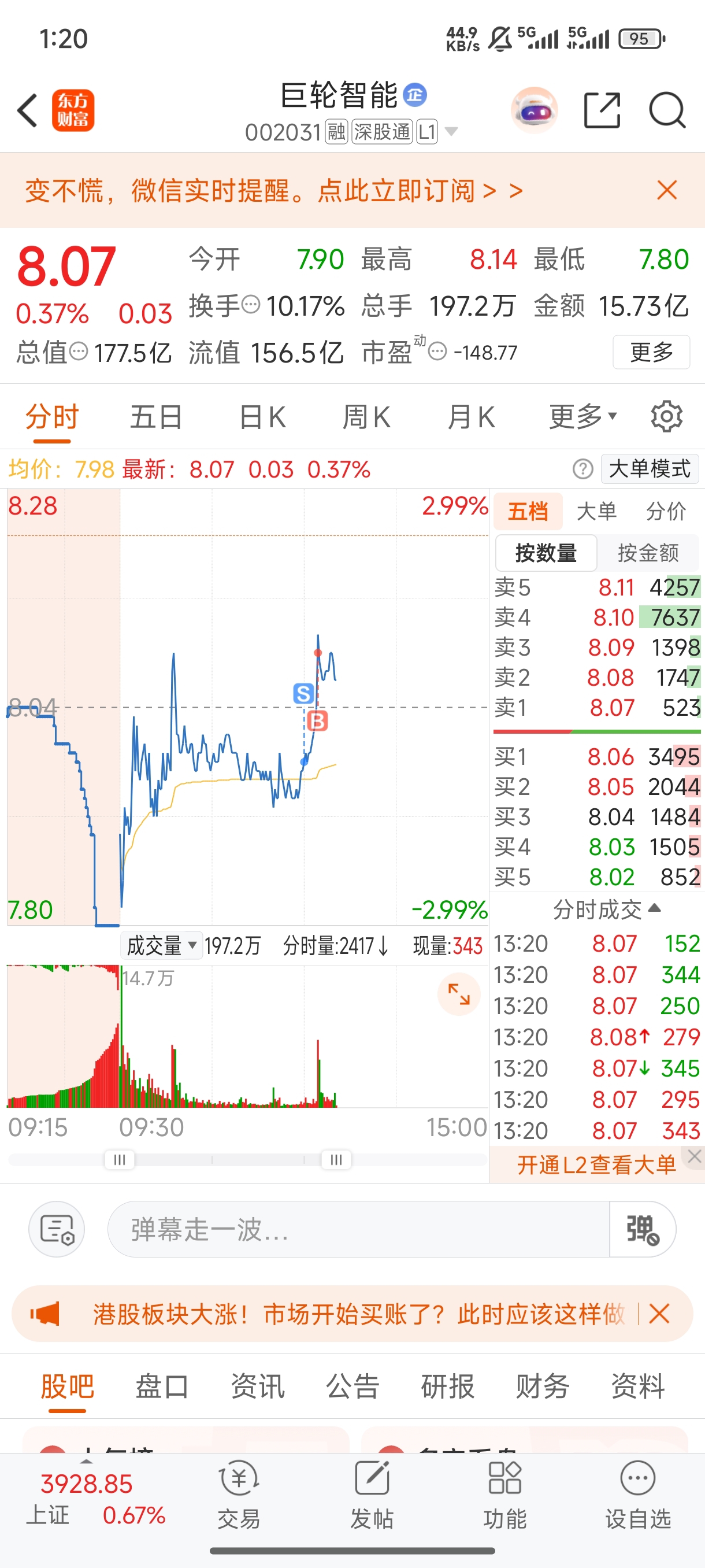 $巨轮智能(SZ002031)$ 快被自己蠢笑了