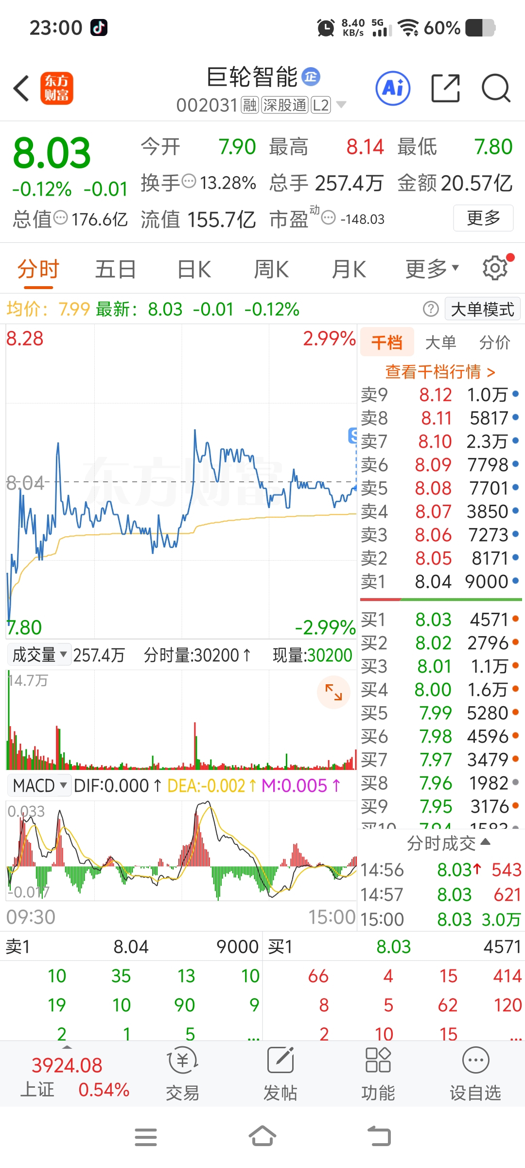 $巨轮智能(SZ002031)$ 主力太弱了,再见。