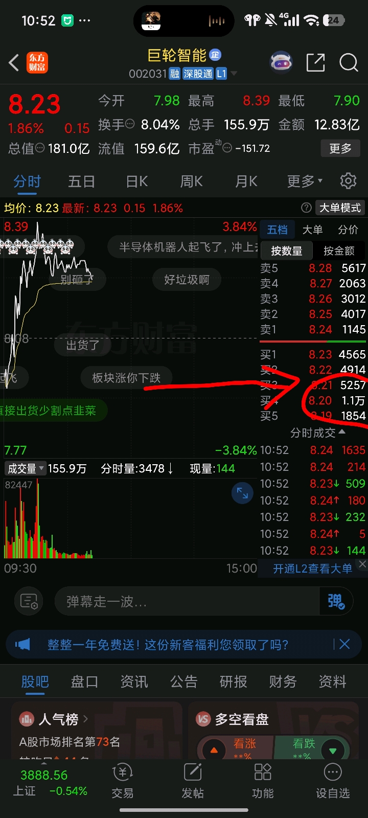 $巨轮智能(SZ002031)$ 拖单必往下击穿