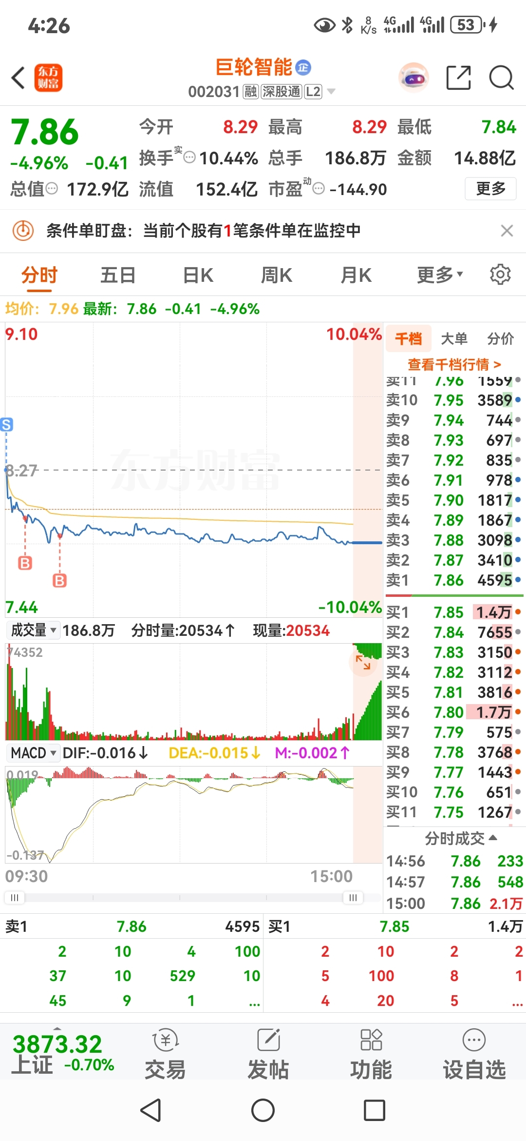$巨轮智能(SZ002031)$ 今天早上做了T,我这个家伙还是有点小信心