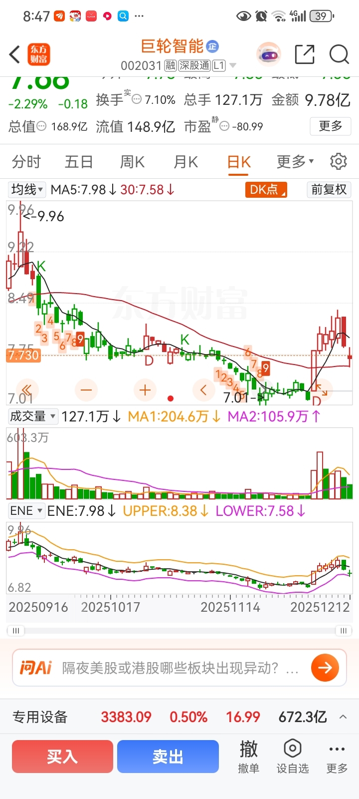 $巨轮智能(SZ002031)$ 看这幅截图。上穿30以后。然后回踩30。和泰尔股份同一天出现的涨停板。泰尔股份提前一天回踩30。周五出现了第二个涨停。巨轮周五才回踩30。明天大概率有一个涨停,或者一根中阳线出现。