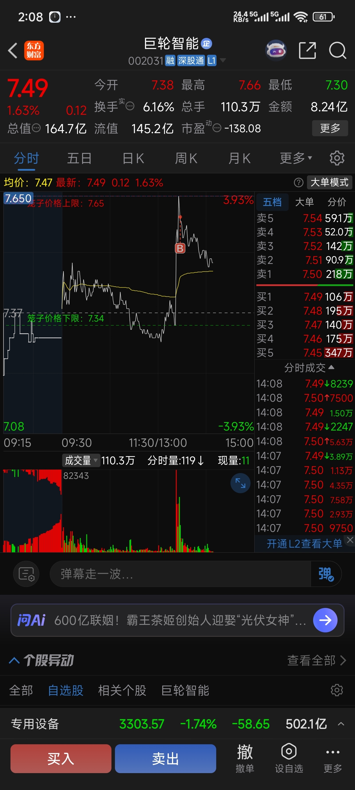 $巨轮智能(SZ002031)$ 又挂在山顶