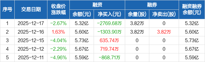 巨轮智能:融资净偿还2769.68万元,融资余额5.32亿元(12-17)