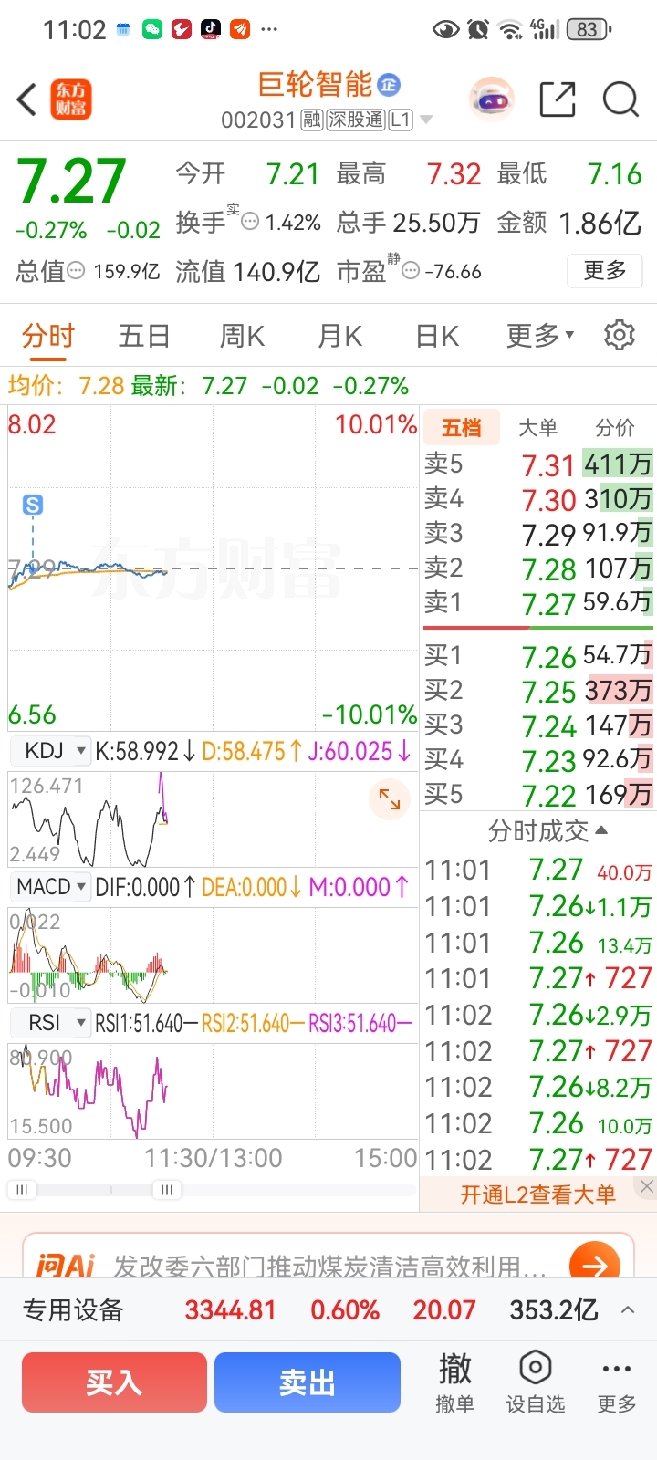 $巨轮智能(SZ002031)$ 7.28卖出大部分,已转移到泰尔股份。