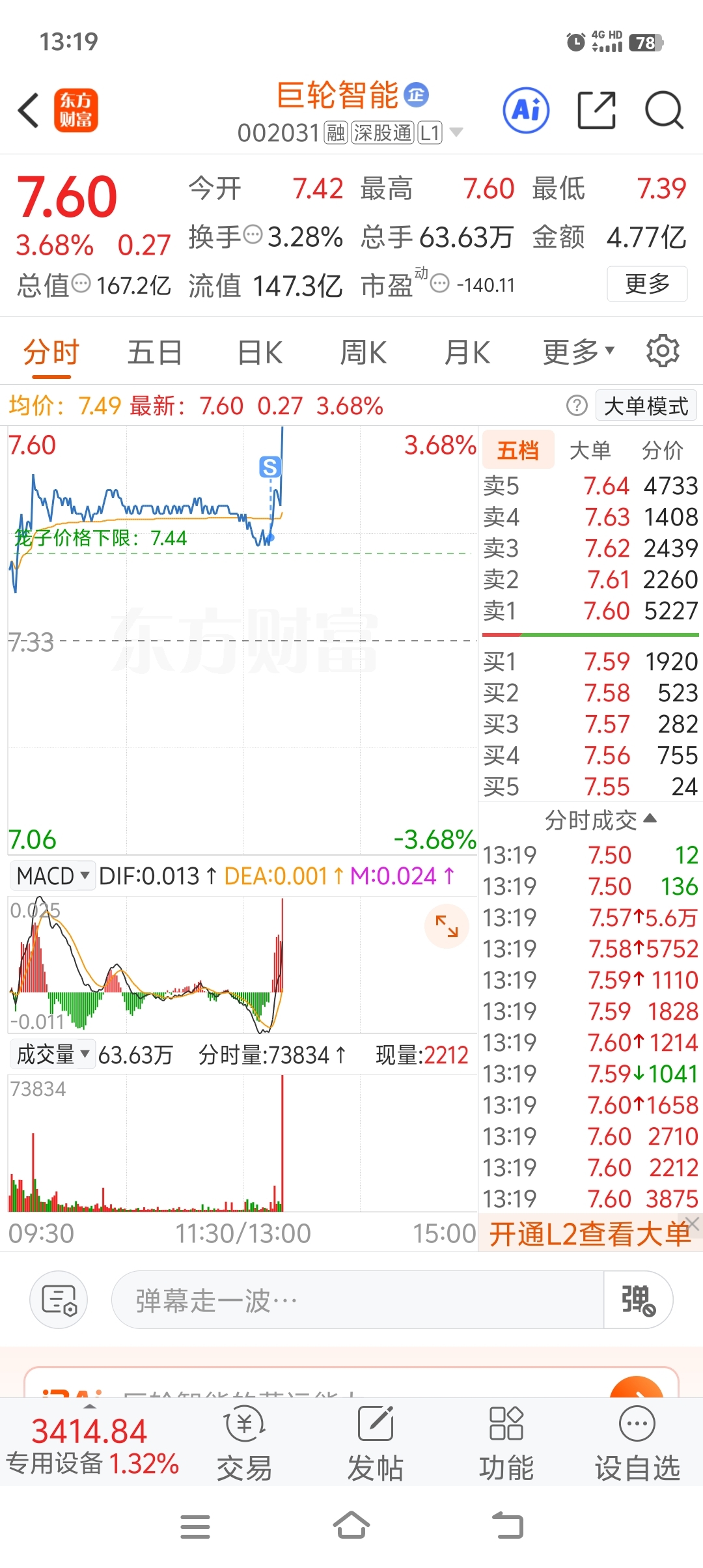 $巨轮智能(SZ002031)$ 你就差我这三瓜两枣