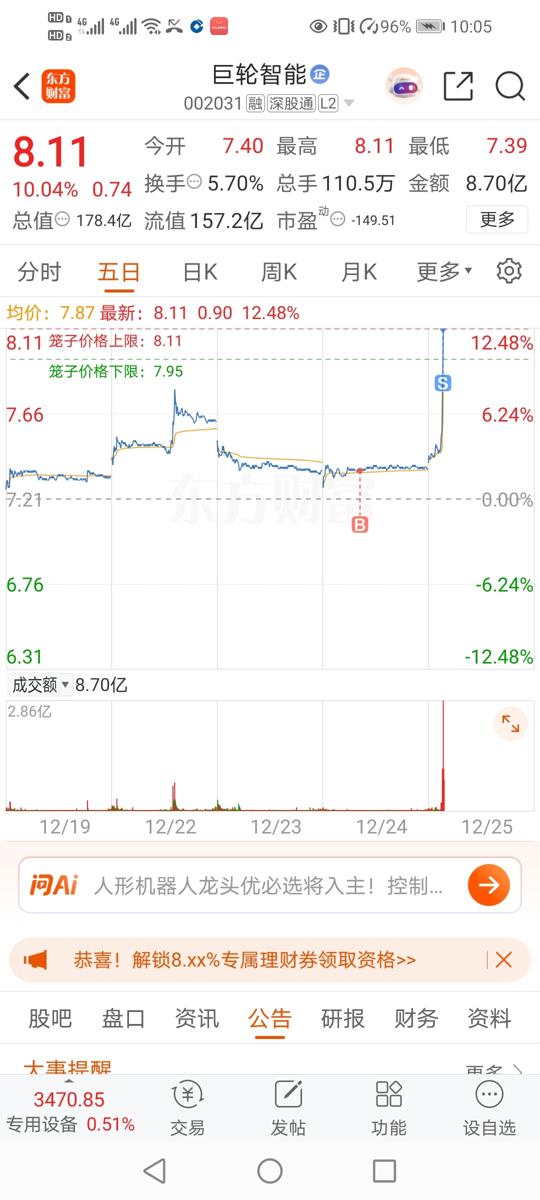 $巨轮智能(SZ002031)$ 感谢主力,昨天买的,吃了10个点