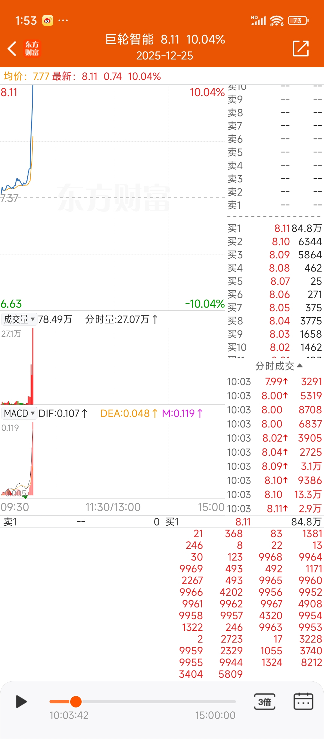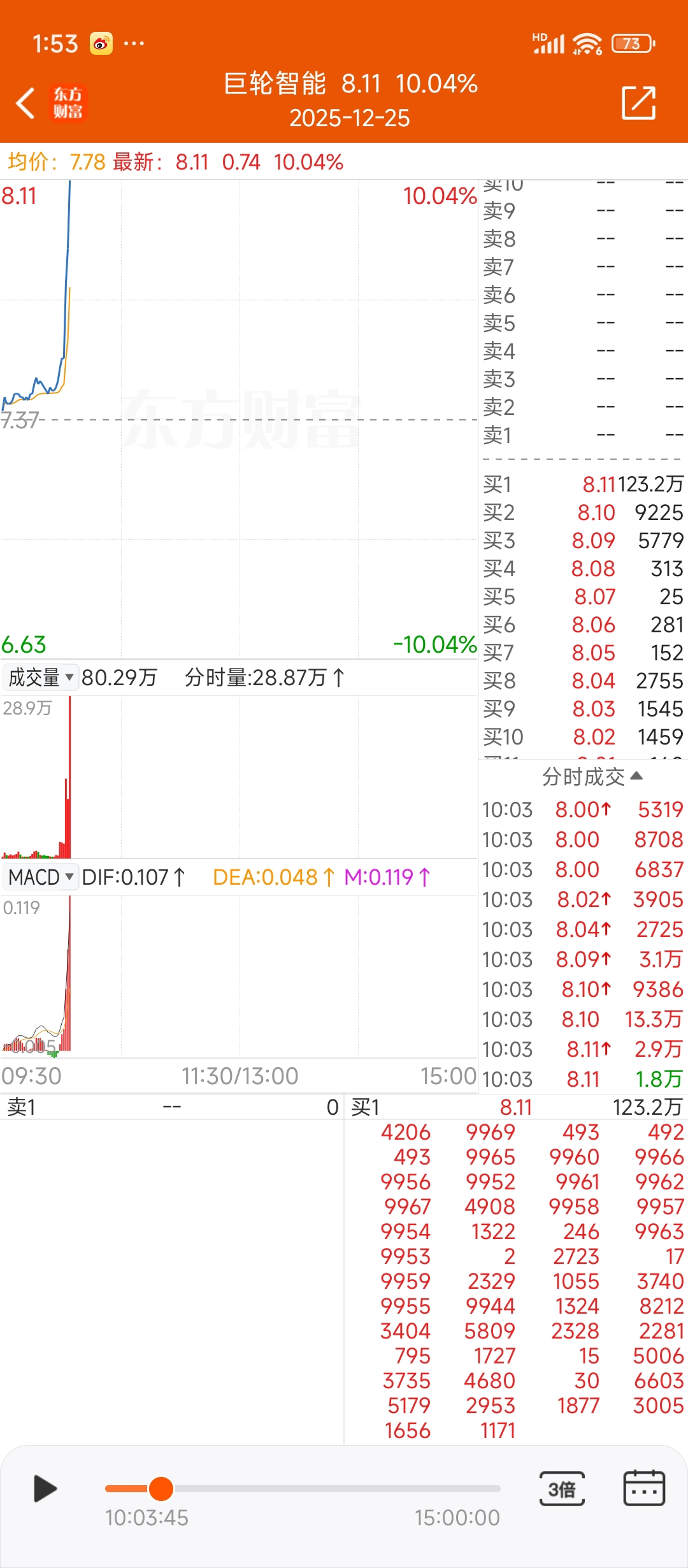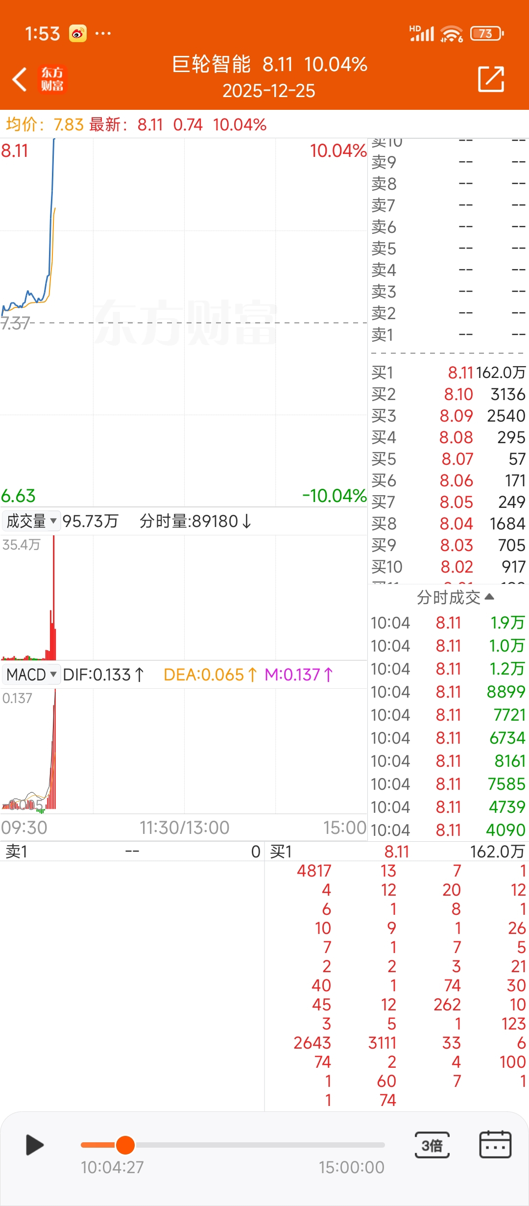 $巨轮智能(SZ002031)$ 昨天最高162万手封板。