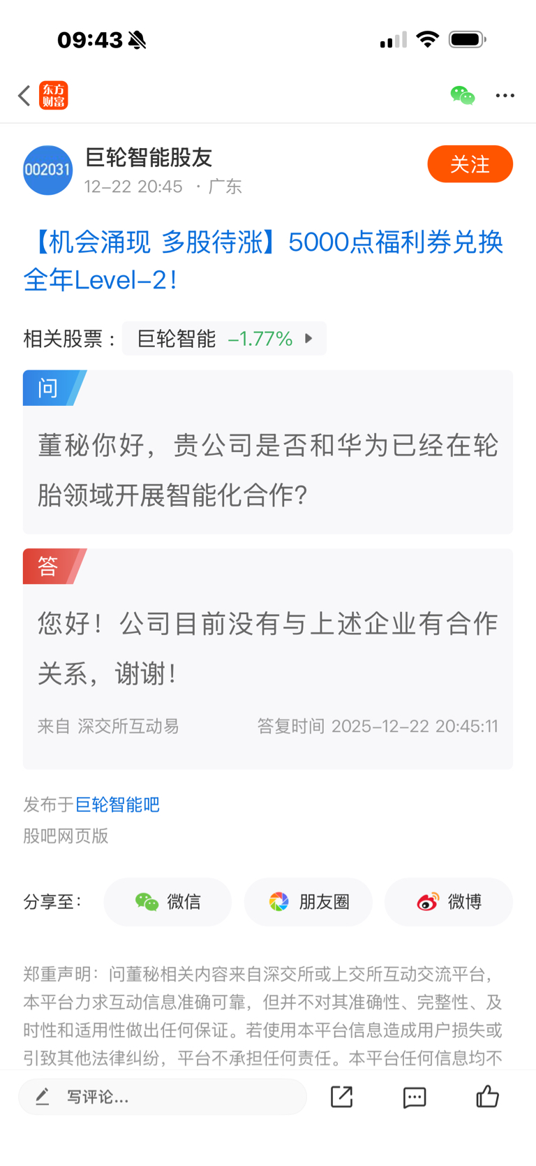 巨轮没有和华为合作别被水军误导