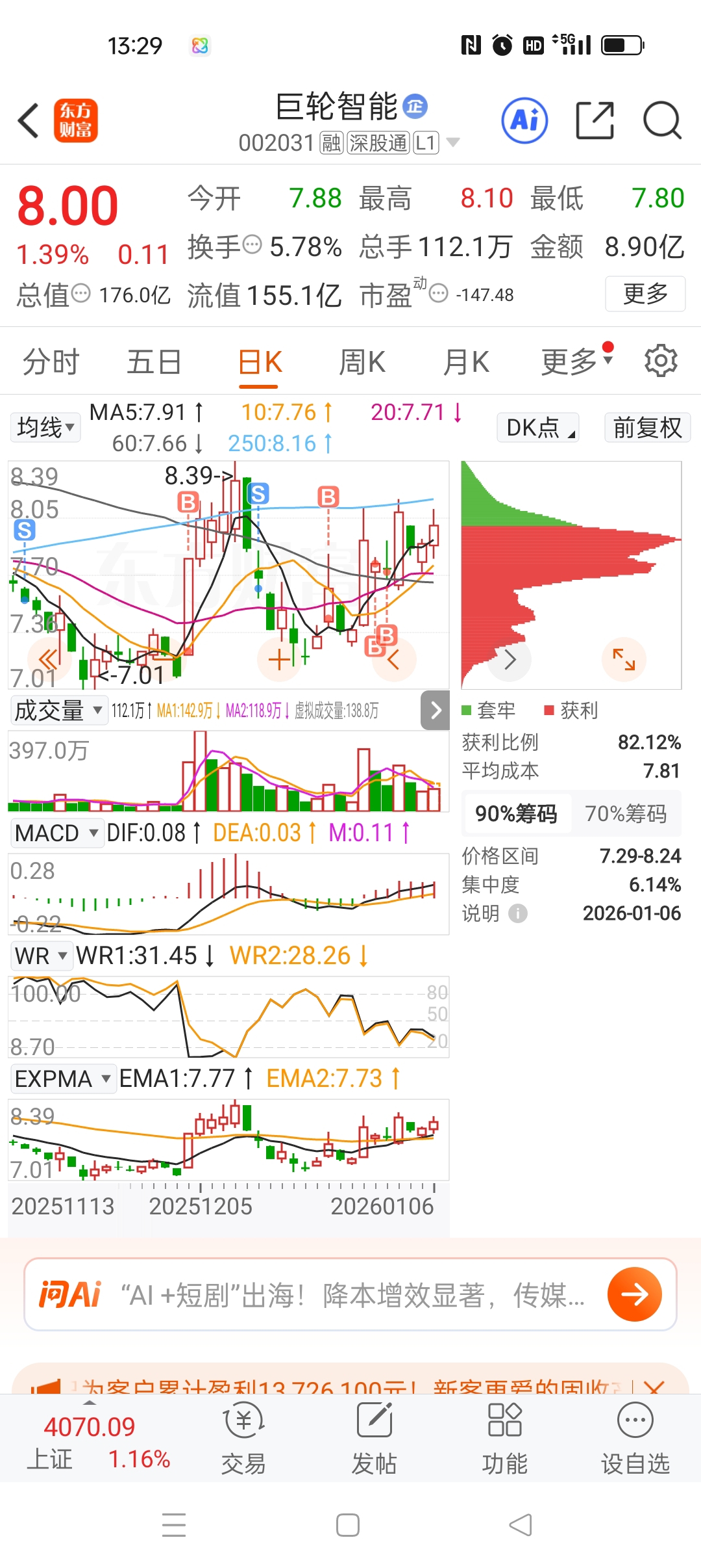 $巨轮智能(SZ002031)$ 买你不为别的,就等宇树上市