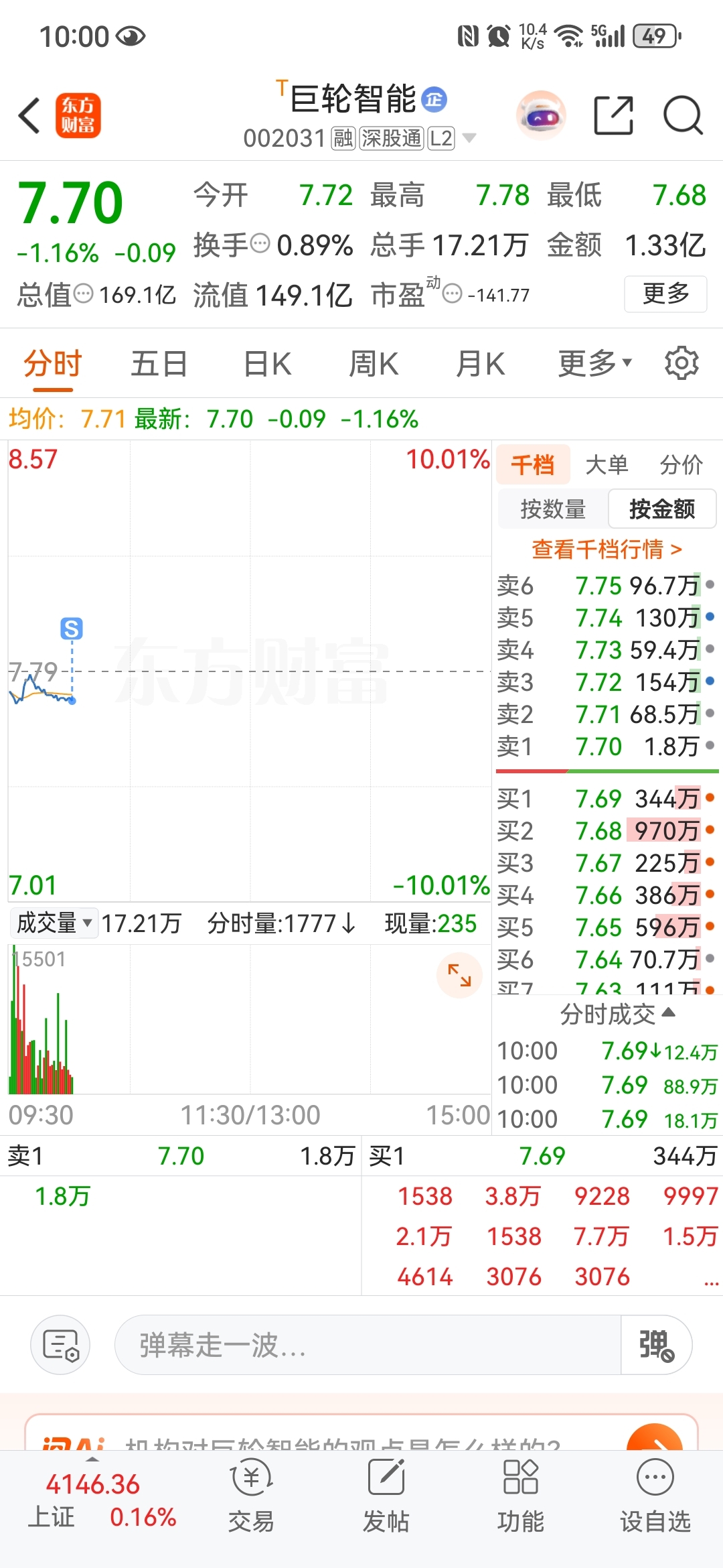 $巨轮智能(SZ002031)$ 走了,