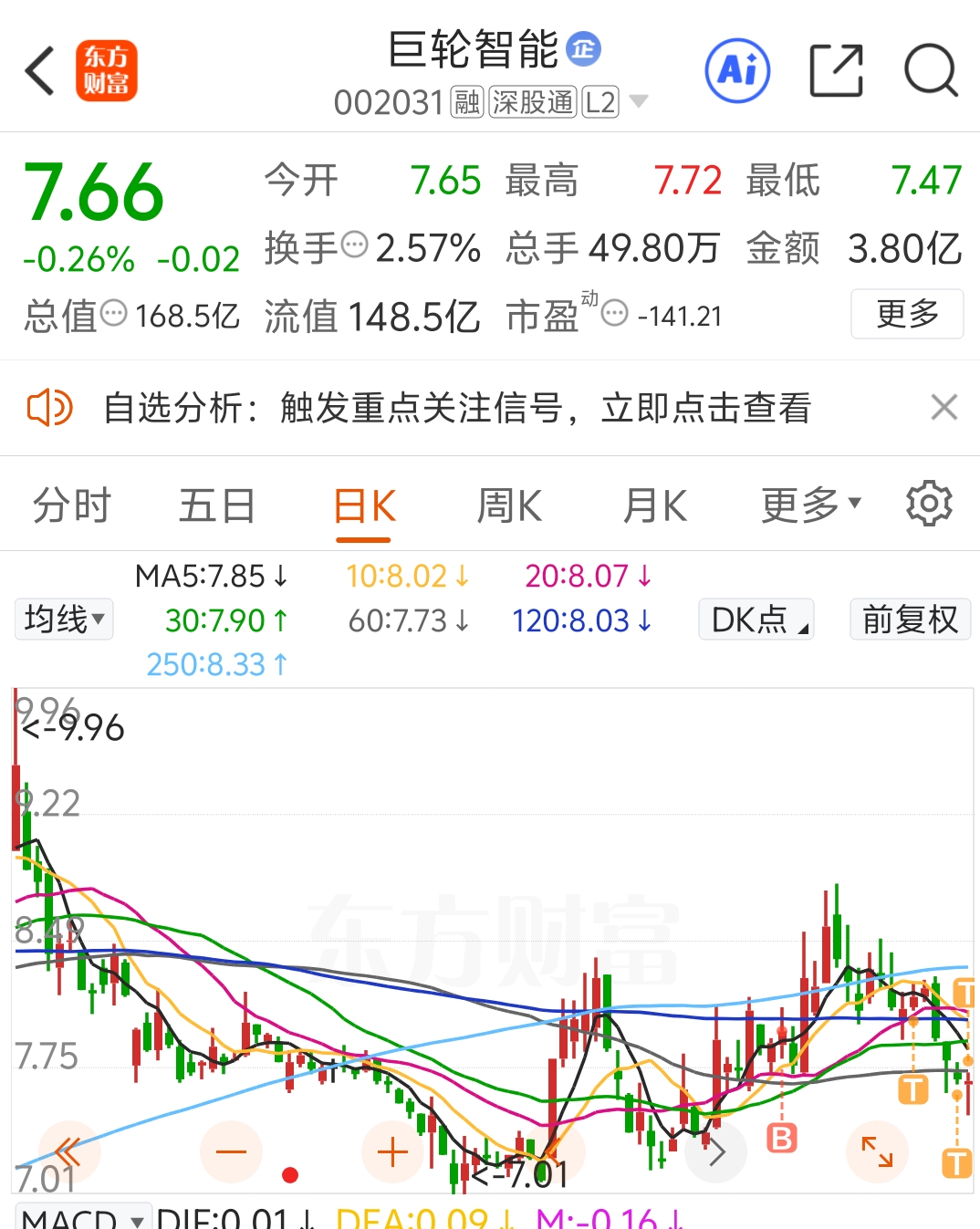 $巨轮智能(SZ002031)$ 每次降低一两毛,不大涨不走。