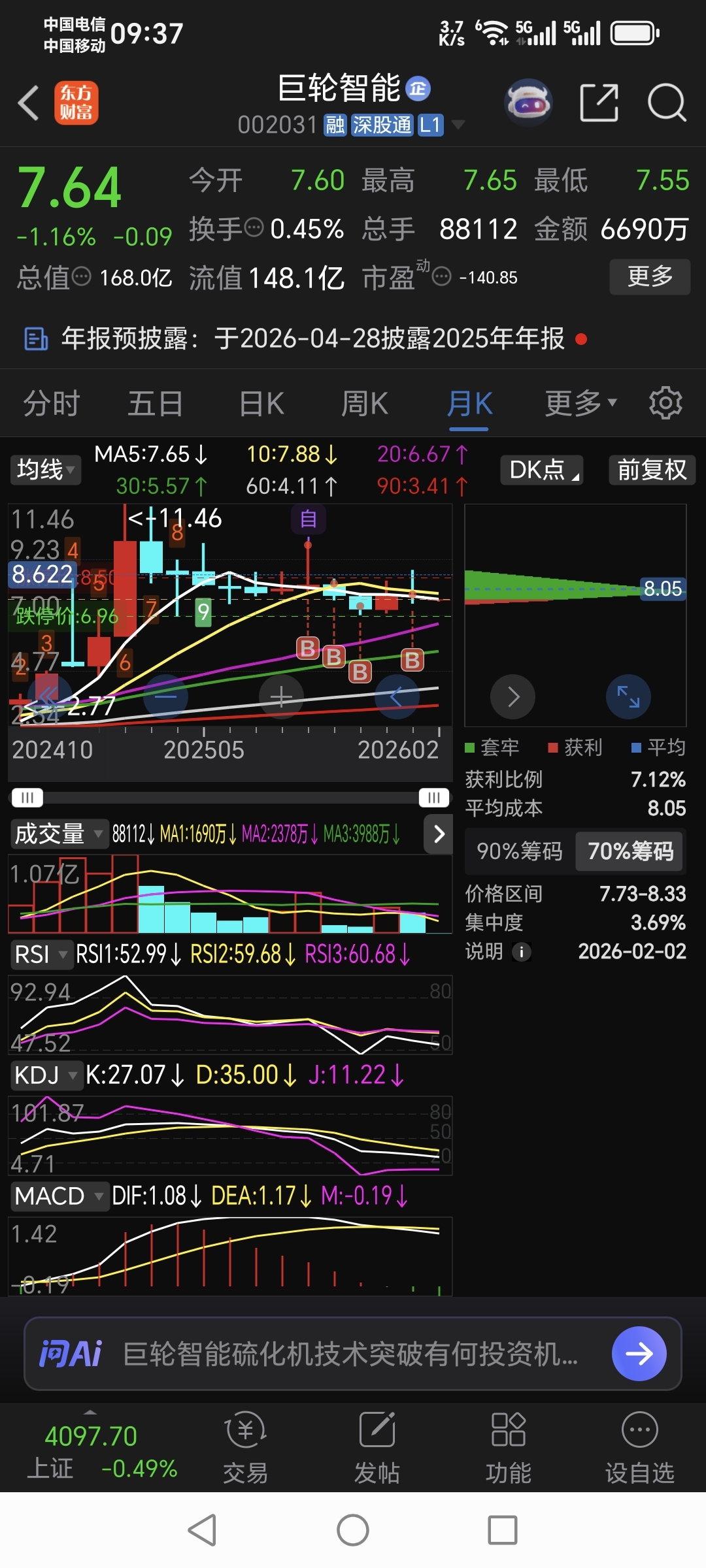 $巨轮智能(SZ002031)$ 这趋势!狗牯脑!一直听信使然!!!