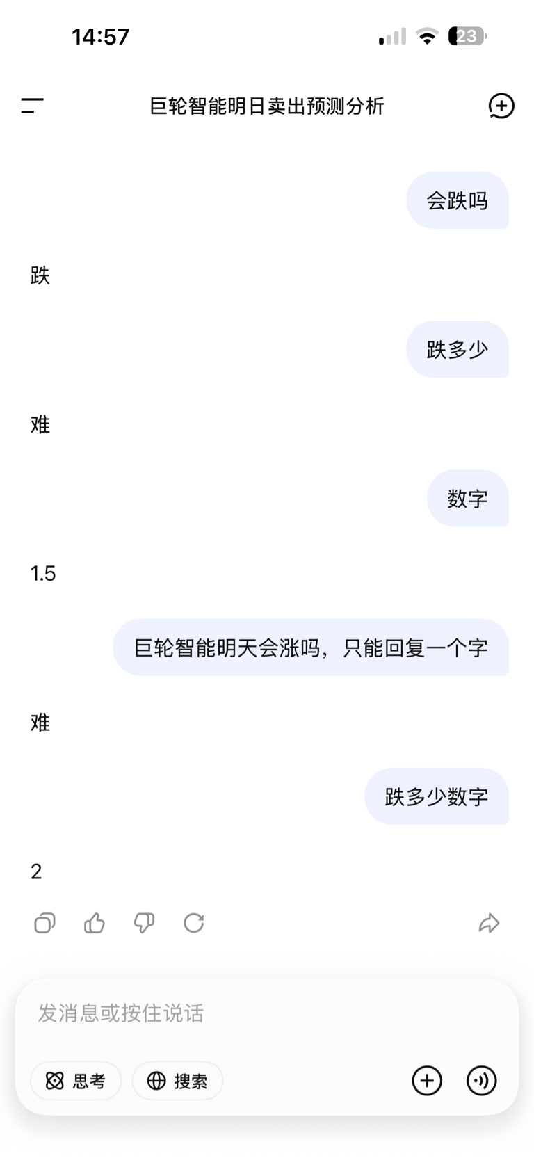 $巨轮智能(SZ002031)$ ai说,今天跌1.5真跌1.5好牛