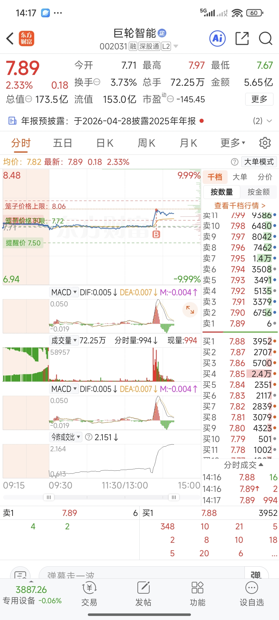 $巨轮智能(SZ002031)$ 家人们挂山上了