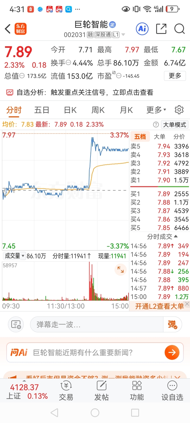 $巨轮智能(SZ002031)$ 明天给我回本吧!