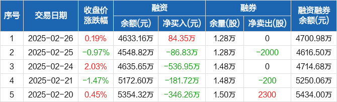 苏泊尔:融资净买入84.35万元,融资余额4633.16万元(02-26)