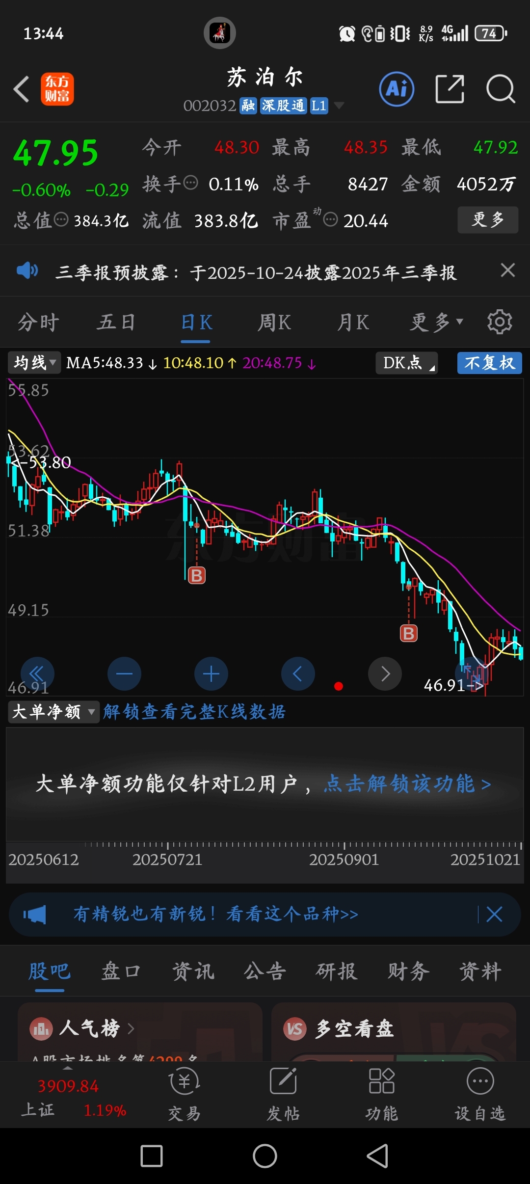 $苏 泊 尔(SZ002032)$ 不补仓了,随便跌吧