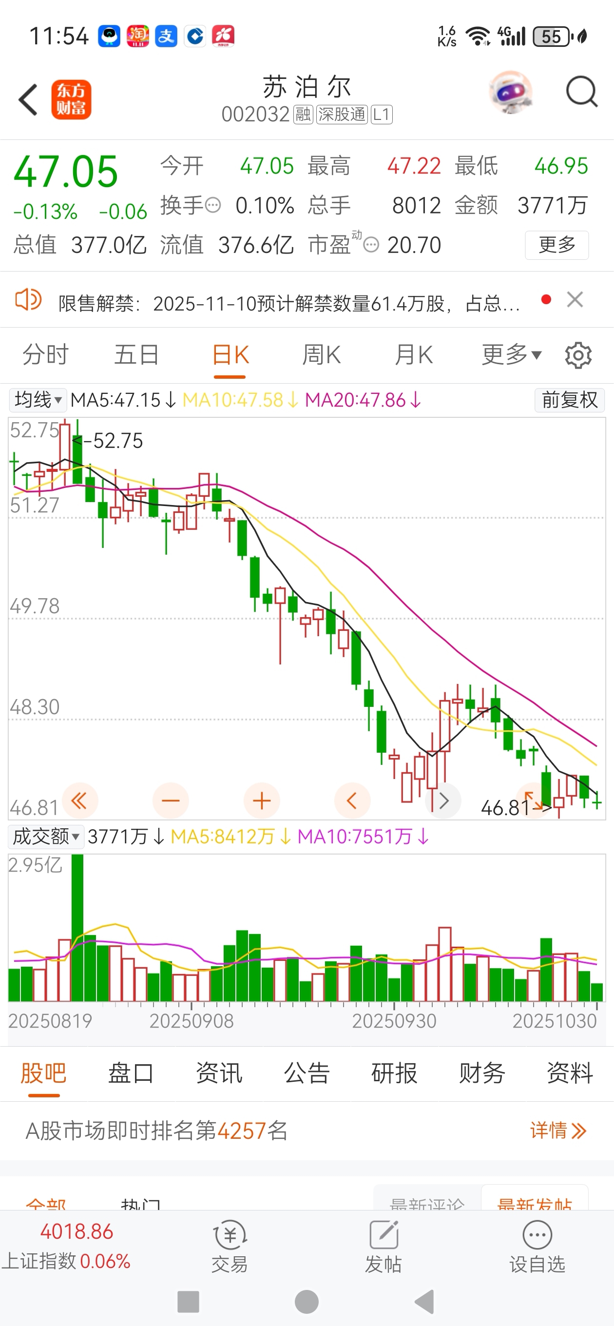 $苏 泊 尔(SZ002032)$ 苏泊尔是绩优股里依然盈利的行业龙头股票里奇迹,已经破了连续阴跌的记录!SEB在下一盘大棋吗?