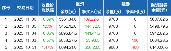 苏泊尔:融资净买入109.22万元,融资余额5561.34万元(11-06)