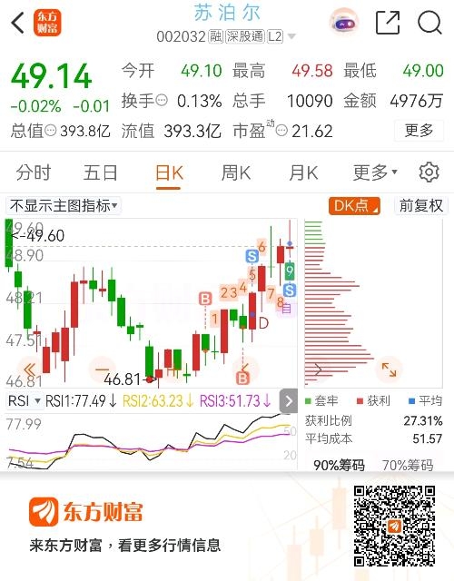 $苏 泊 尔(SZ002032)$ 撤了,48左右再进。