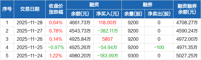 苏泊尔:融资净买入118万元,融资余额4661.73万元(11-28)