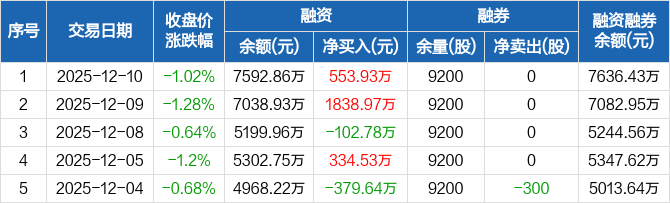 苏泊尔:融资余额7592.86万元,创近一年新高(12-10)