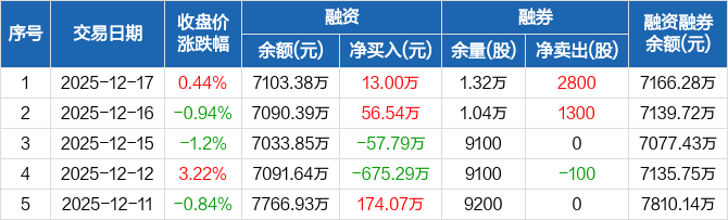 苏泊尔:融资净买入13万元,融资余额7103.38万元(12-17)