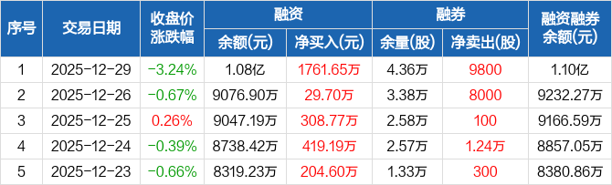 苏泊尔:融资余额1.08亿元,创近一年新高(12-29)