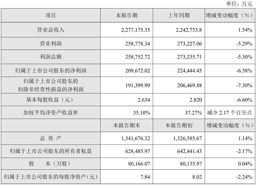 2月24日,苏泊尔(002032)发布公告,2025年度财务数据初步核算结果显示,公司营业总收入为227.72亿元,同比增长1.54%;利润总额为25.88亿元,同比下降5.30%;归母净利润为20.97亿元,同比下降6.58%。