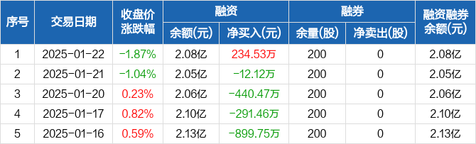 丽江股份:融资净买入234.53万元,融资余额2.08亿元(01-22)