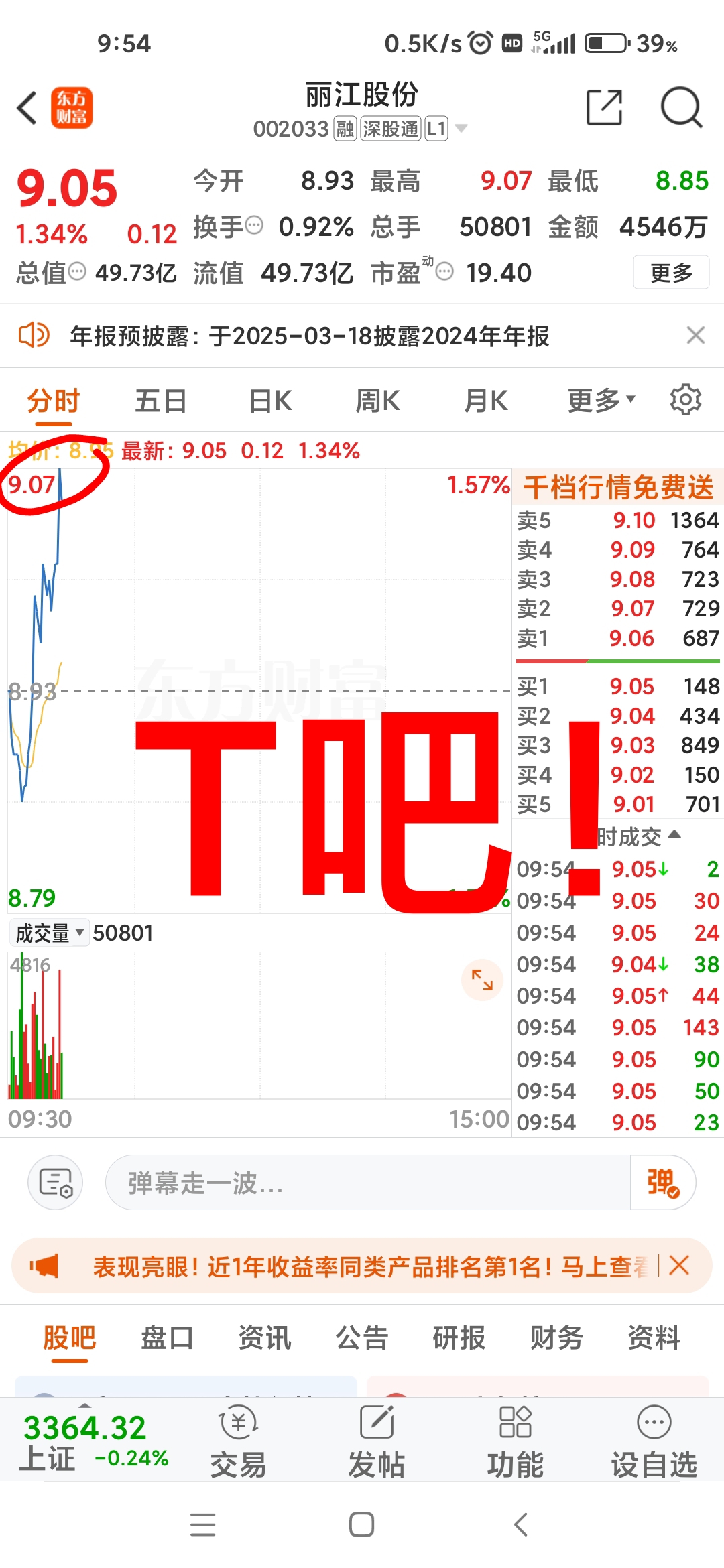 $丽江股份(SZ002033)$ 又可以T了!就是T1毛5也好!9元的丽江是不稳的!