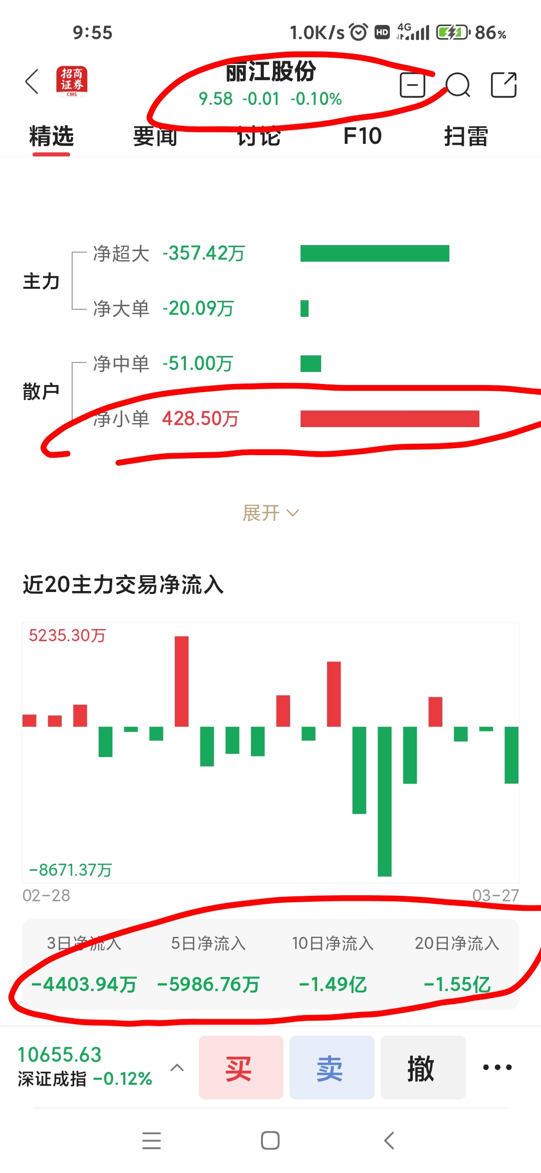 $丽江股份(SZ002033)$ 从资金流向看,丽江已经废了,大资金持续流出,而且套牢的小散太多!全都是等着解套走人人!主力不是活雷锋!所以丽江好不了!这个月又流出1.6亿!