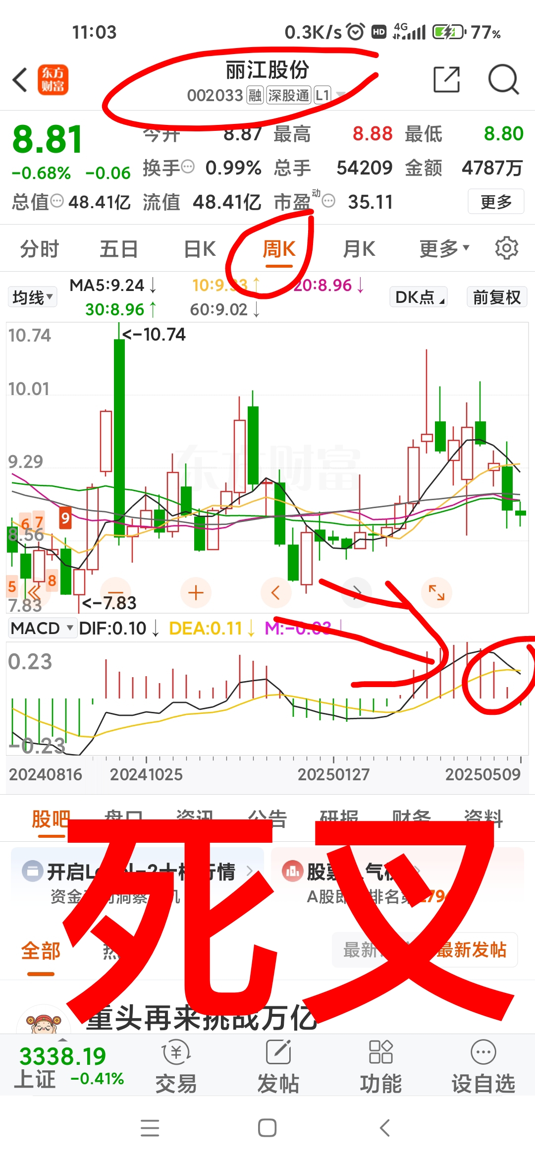 $丽江股份(SZ002033)$ 周线刚死叉!还要再跌二周!五月尾才看吧!看看能不能跌破8元!今年是有机会再跌破8元的丽江!