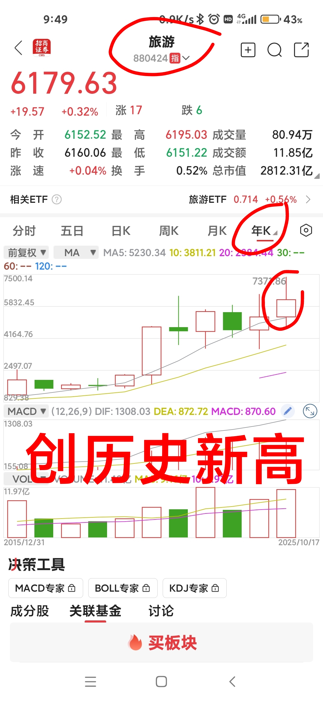 $丽江股份(SZ002033)$ 从年初就对大家直说,丽江今年跑输板块落后大盘!现在已经10月尾了!丽江还是零涨幅!大盘与板块升近20%!板块指数已创历史新高!丽江离历史新高还差近1倍!不对比,你就不知道丽江多垃圾!