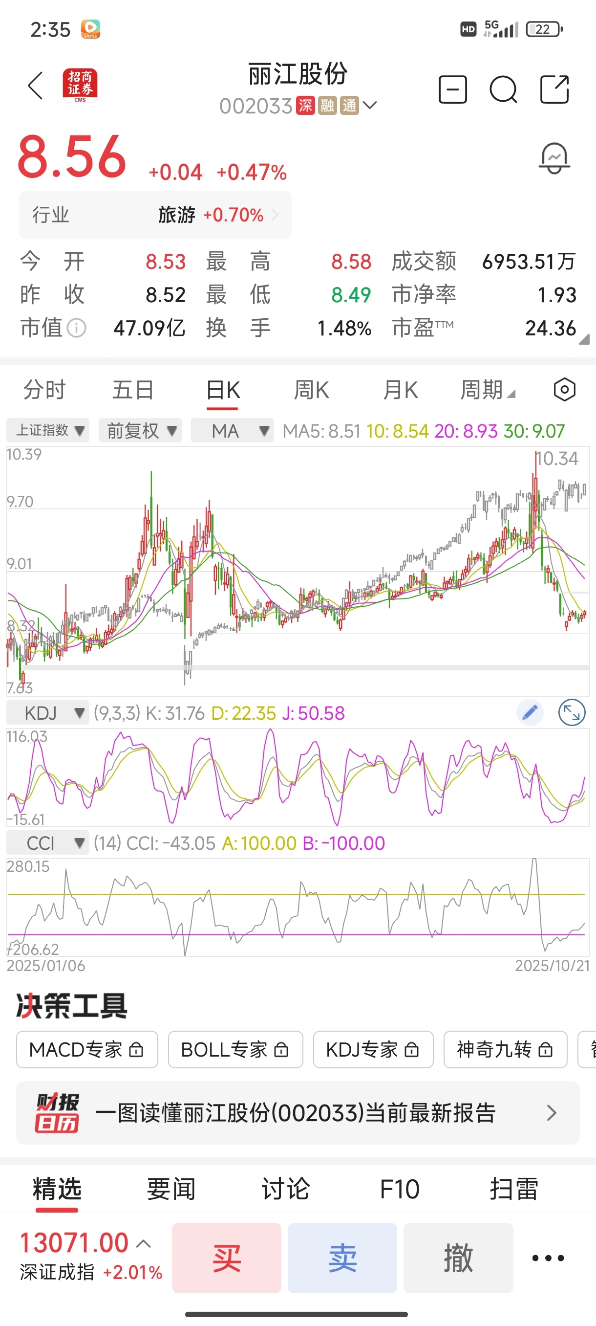 $丽江股份(SZ002033)$ 上下都很悬,往下可能回补7.6,往上可能回补8.76,主力意图不明,谨慎观看