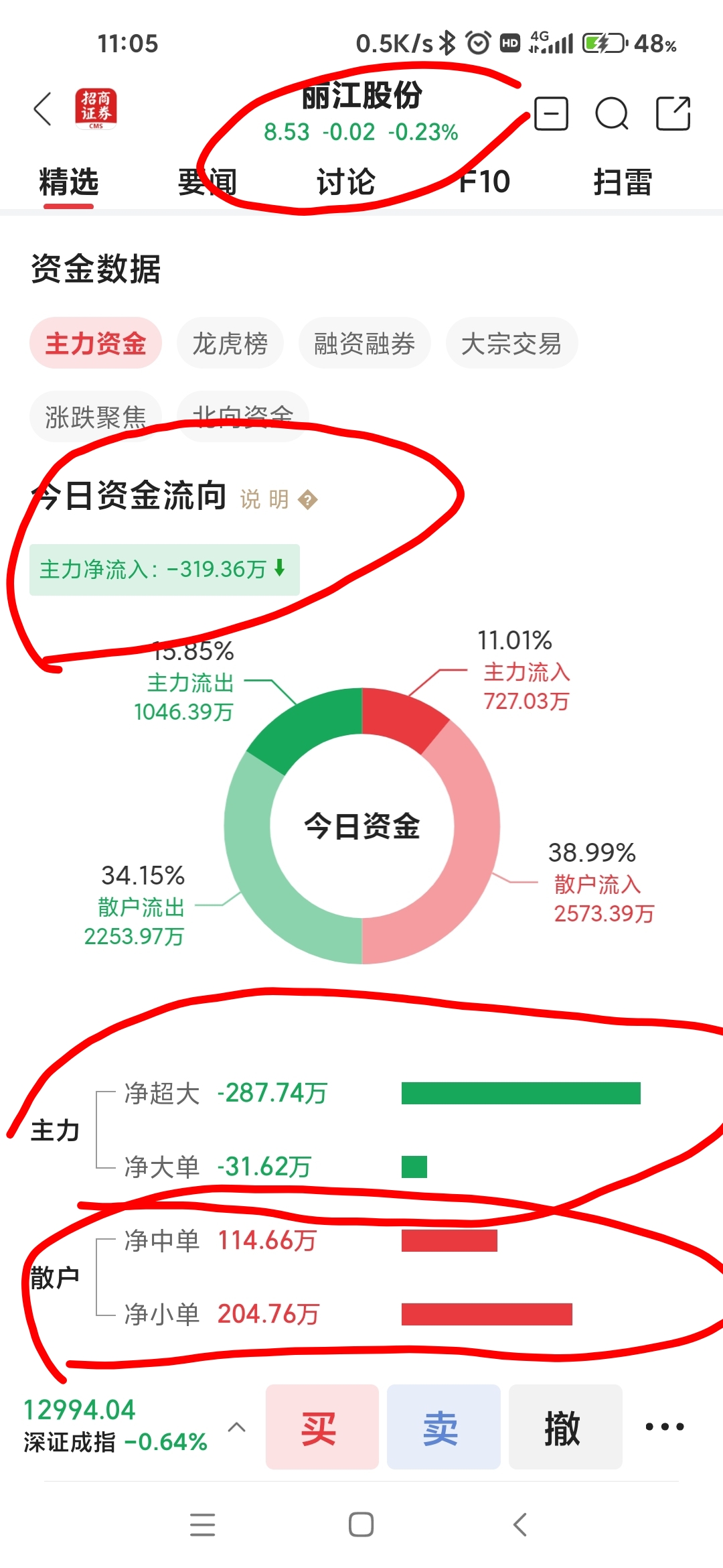 都说了!丽江全部小散接盘!主力每天都是流出的!而且换手率不到2%!所以丽江是不会