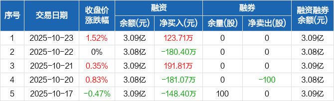 丽江股份:融资净买入123.71万元,融资余额3.09亿元(10-23)