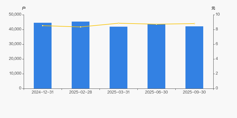 截至2025年9月30日,公司最新流通股本为5.49亿股。户均持有流通股数量由上期的1.25万股上升至1.3万股,户均流通市值11.47万元。