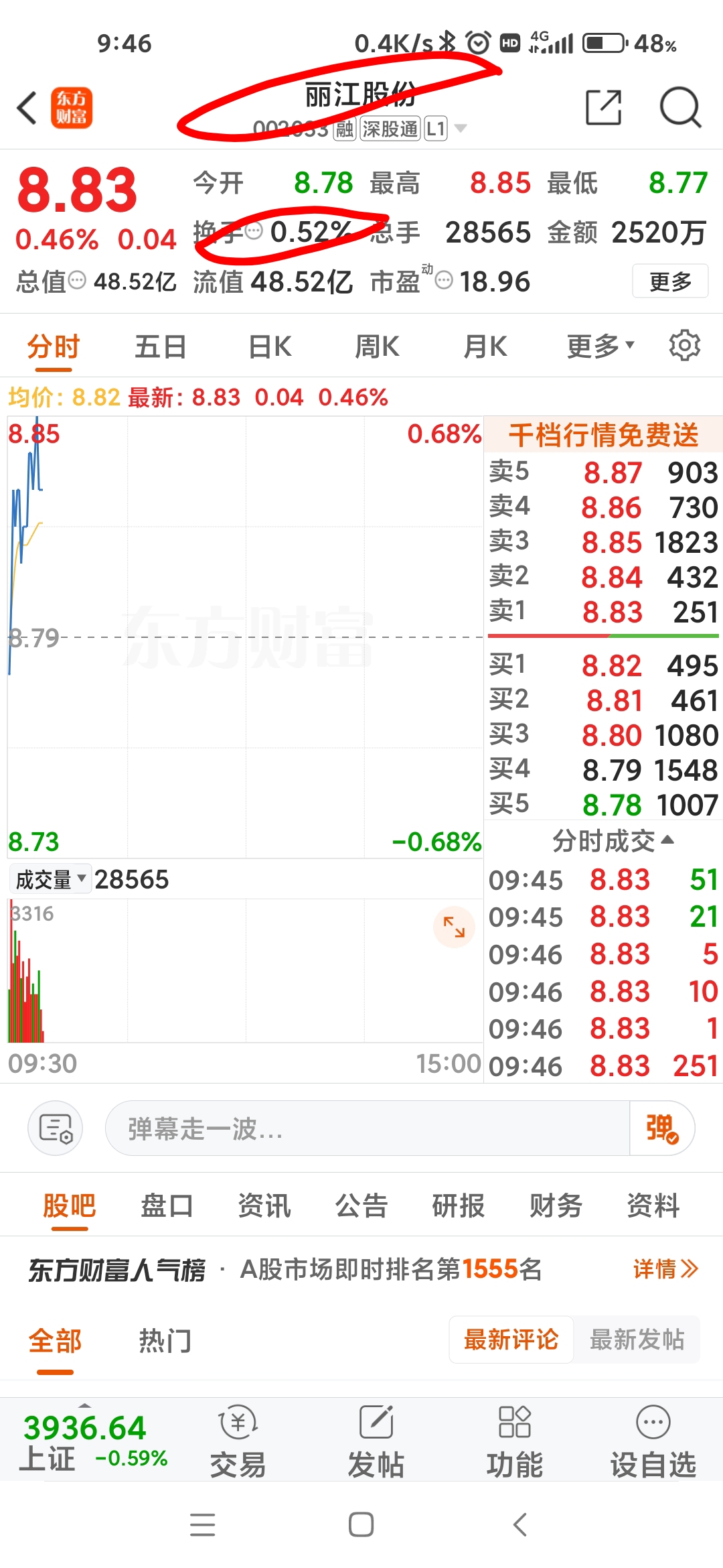 $丽江股份(SZ002033)$ 没有一点量!只要风一吹,随时变绿的可能!更没有增量资金!涨比登天还难!!